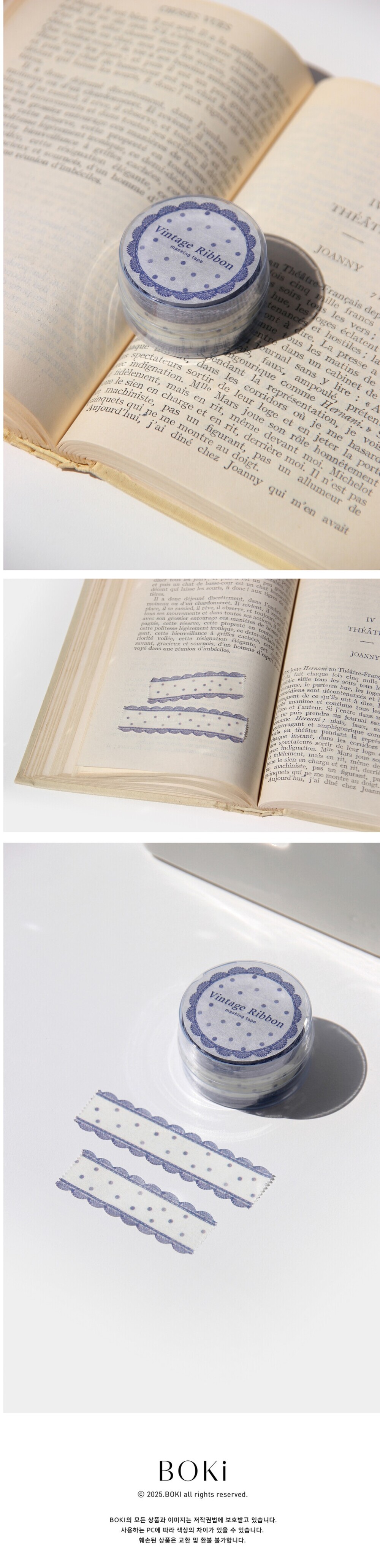 [보키] Vintage Ribbon Die-cut Masking Tape [Navy Dot]