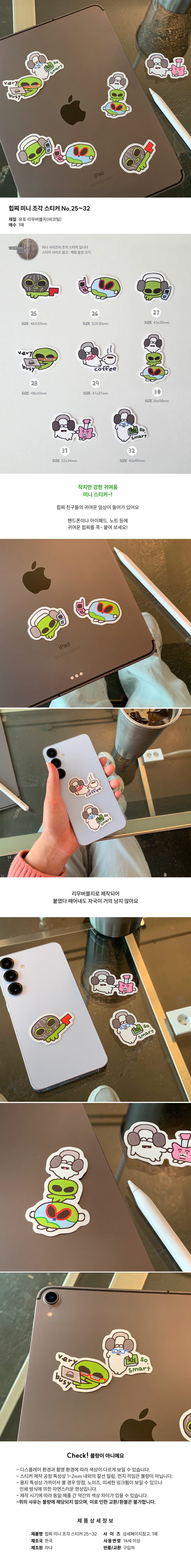 [힙찌] 힙찌 미니 조각 스티커 25 ~ 32번