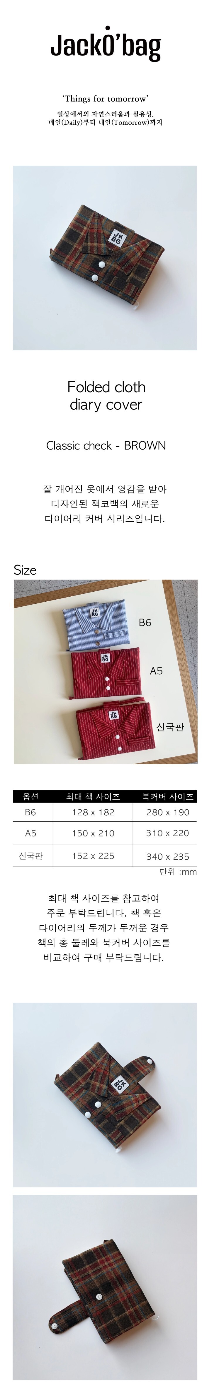[잭코백] Folded cloth diary cover - Classic check BROWN