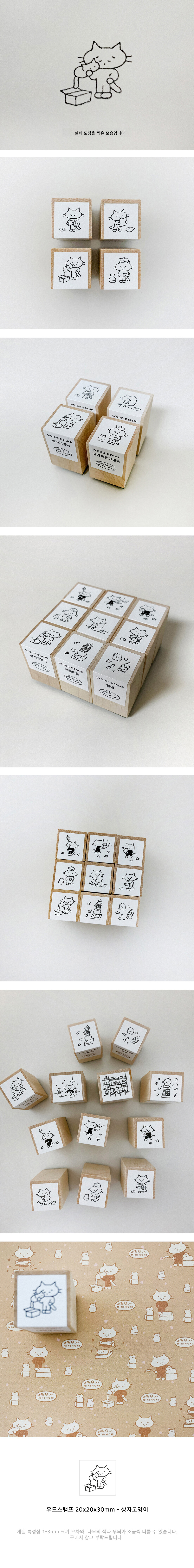 [미니모니] 우드스탬프 - 상자고양이