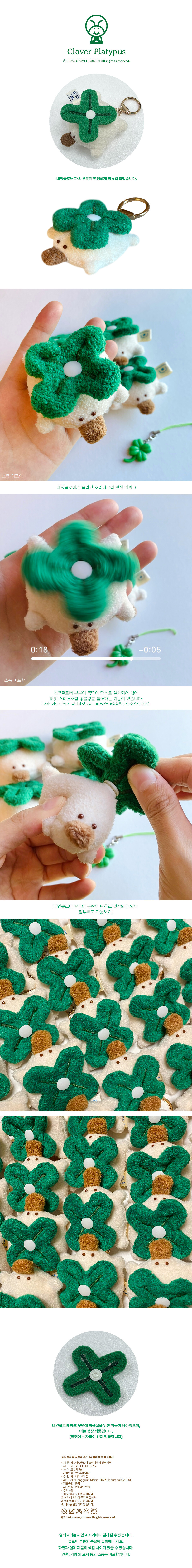 [나이브가든] 네잎클로버 오리너구리 인형키링