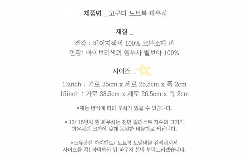 [세컨드모닝] 고구미 노트북 파우치 2종