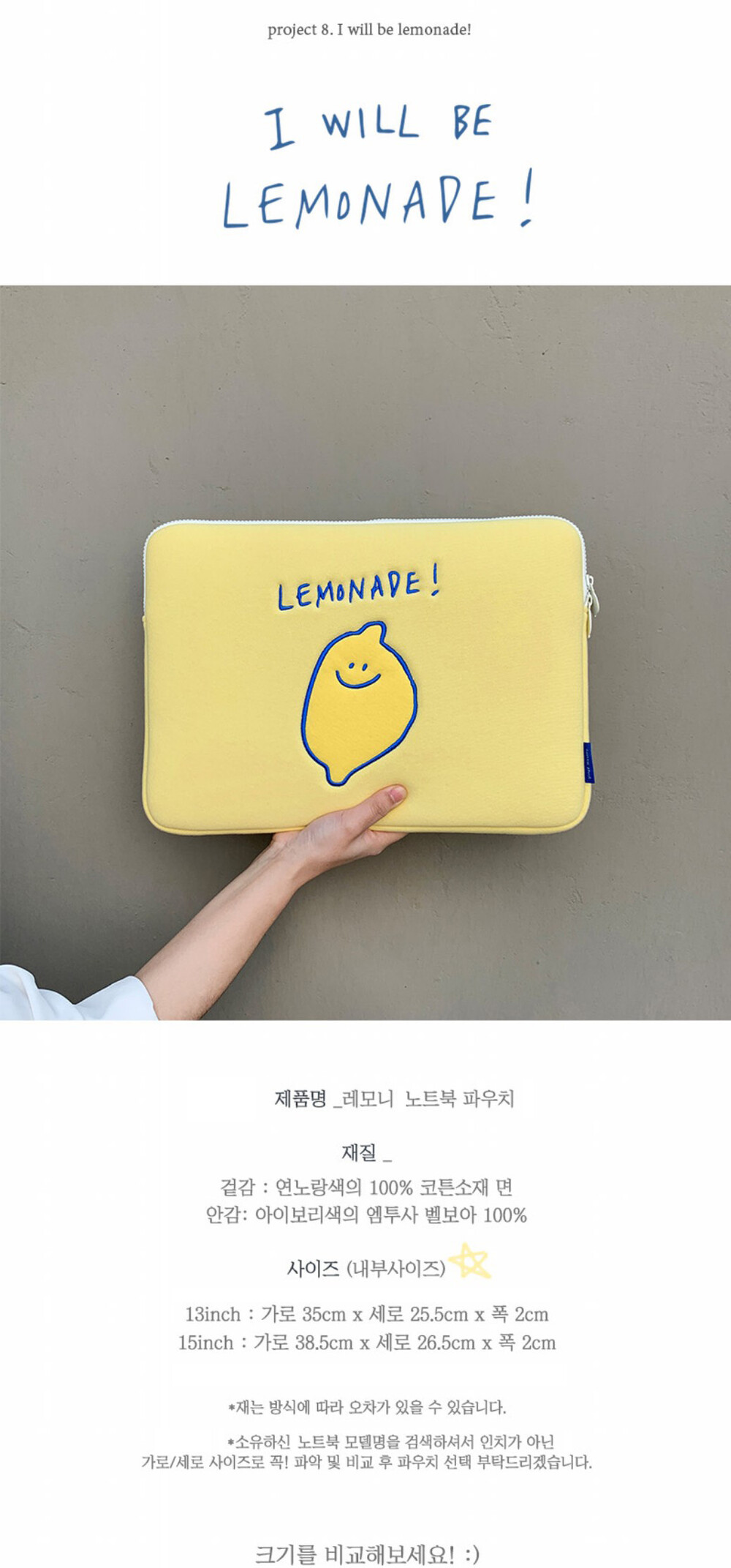 [세컨드모닝] 레모니 노트북 파우치 2종