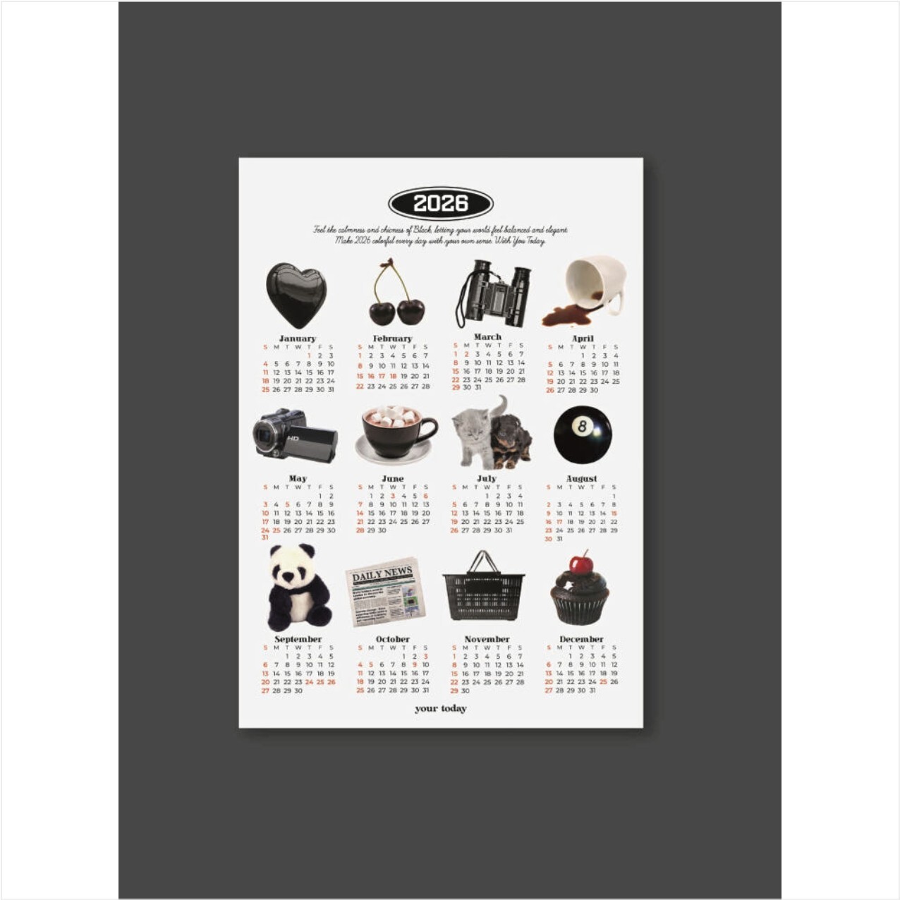 [유어투데이] 2026 A3 포스터 달력_블랙 오브제